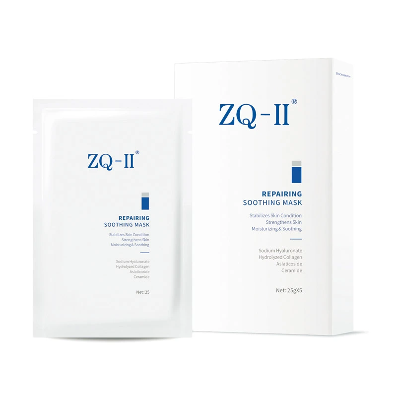 ZQ-II: n korjaaminen rauhoittavan naamion yhdistäminen erilaisia ainesosiakorjaus, kosteusja muu toiminto, mukaan lukienEpidermaalinen kasvutekijä, mikä auttaa korjaamaan vaurioituneen sarveiskerroksen ja lisäävät kollageenisynteesiä ihon ikääntymisen estämiseksi tehokkaasti.Centella Aasian glykosiditEdistää epidermaalista haavan paranemista ja anti-inflammatorista vaikutusta tarjoamalla rauhoittavia ja kosteuttavia ominaisuuksia pitäen samalla tasapainoista ihonhoitoa. Myös virkistävästi kuvioitu kaava sisältääHydrolysoitu kollageenikorjata ja lukita kosteutta, kunHyaluronihappoVähentää tulehduksellisten välittäjien eritystä samalla kosteuttaen ihoa.